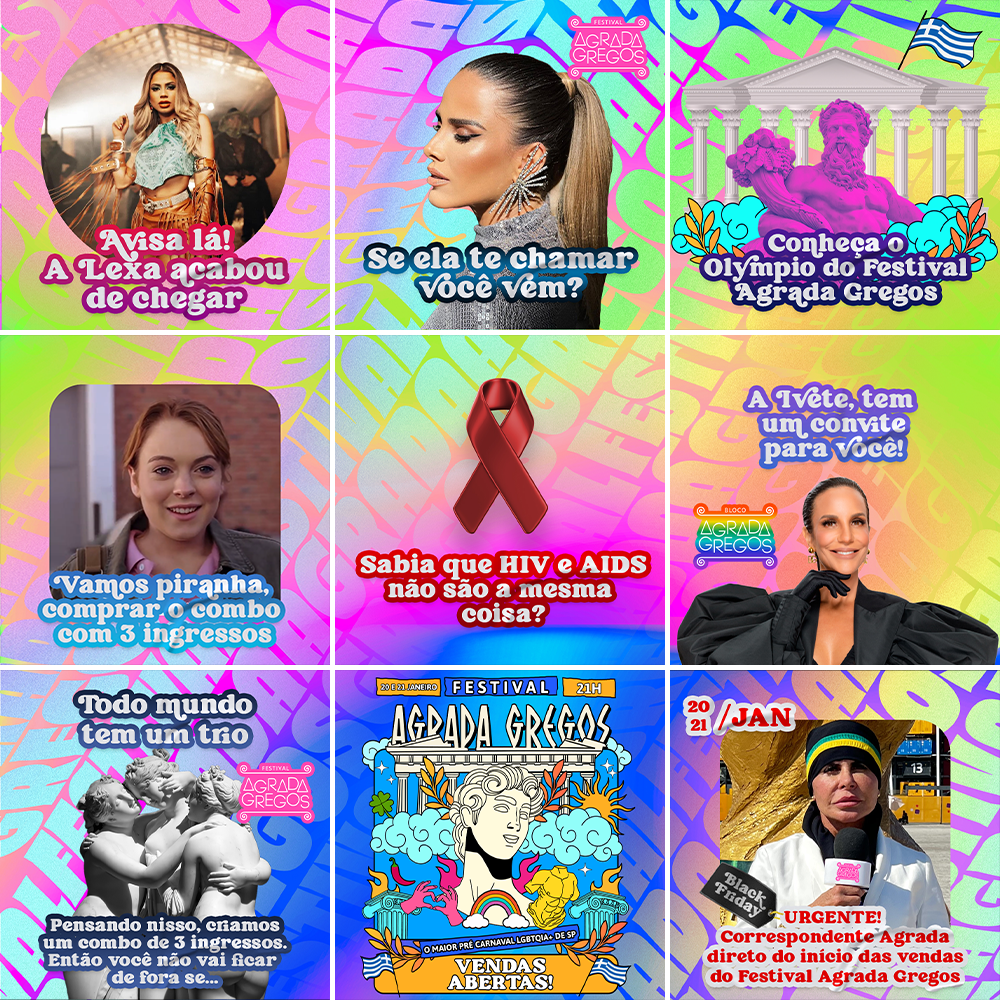 Para promover o festival, desenvolvemos um kit de divulgação completo, incluindo posts, stories e reels animados, projetados para cativar o público-alvo nas redes sociais. Cada elemento foi cuidadosamente planejado para transmitir a energia contagiante do Carnaval e destacar a diversidade e a celebração da comunidade LGBTQIA+.
